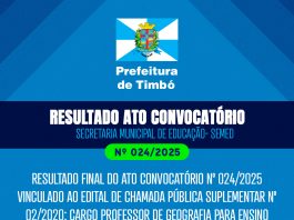 Prefeitura de Timbó divulga resultado final do Ato Convocatório nº 031/2025...