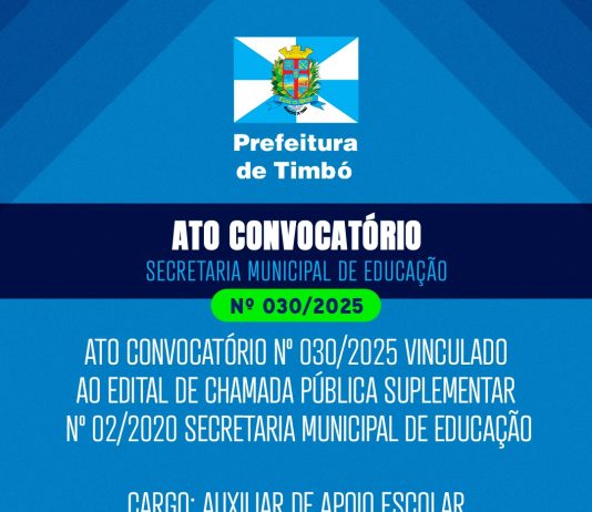 Timbó divulga Ato Convocatório para Auxiliar de Apoio Escolar