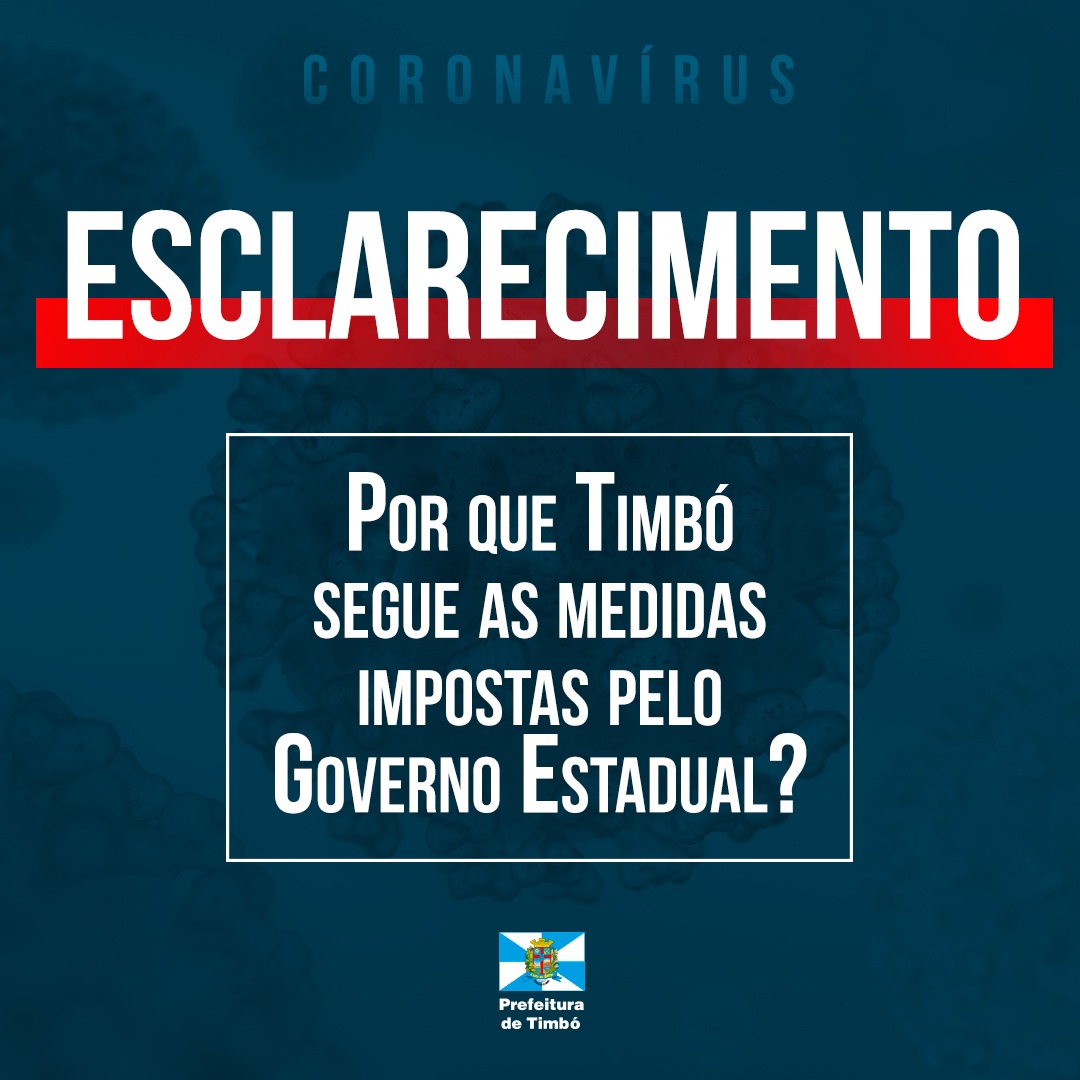 Um questionamento tem sido recorrente: por que o município de Timbó está seguindo as medidas adotadas pelo Governo de Santa Catarina?
