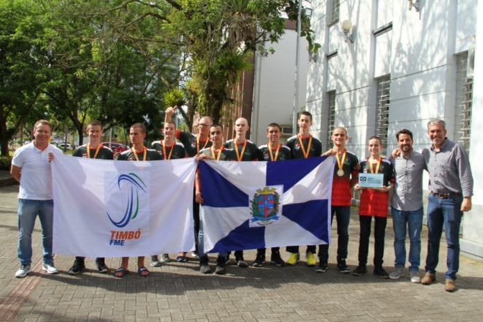 Os atletas chegaram a Timbó na tarde desta quarta-feira, dia 21, e foram recebidos com muita festa, no pátio da Prefeitura. O prefeito de Timbó, Jorge Kruger, parabenizou os atletas, professores e familiares pela conquista do título. “O trabalho da Escola Municipal Erwin Prade é hoje referência no cenário estadual e nacional no âmbito esportivo, e isso é mérito de todos os profissionais que acreditam e incentivam o esporte de base”, destacou ele.