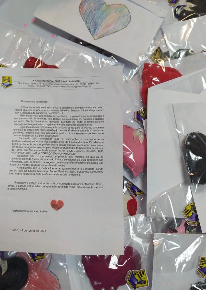 Uma homenagem que vale mais do que mil palavras. Os profissionais da Saúde de Timbó que estão a linha de frente da pandemia de Covid-19, que já se tornou uma das doenças mais mortais da história, receberam uma homenagem ontem. Os alunos dos quartos anos da Escola Municipal Pe. Martinho Stein agradeceram os profissionais por sua dedicação.