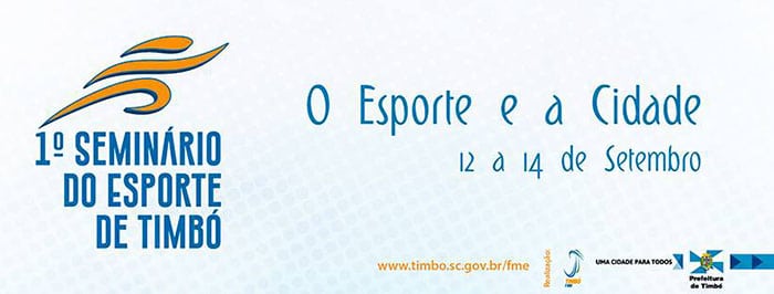 Nos dias 12 a 14 de setembro, a Fundação Municipal de Esportes – FME irá realizar o 1º Seminário do Esporte de Timbó. As palestras tem o objetivo de discutir a importância do esporte para todas as idades na cidade e estimular a participação da comunidade nos eventos criados pela Fundação. Destaque para a palestra do campeão olímpico Paulão do voleibol.