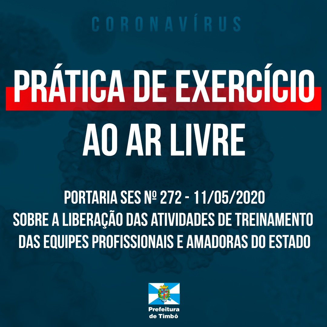 Analisando a Portaria nº 272, do dia 11 de maio de 2020, emitida pela Secretaria de Estado da Saúde (SES) de Santa Catarina nesta semana, que é voltada à liberação das atividades de treinamento das equipes profissionais e amadoras do Estado, e após conversas com alguns dos técnicos e dirigentes de SC, a Fundação Municipal de Esportes (FME) de Timbó, através de sua secretária, Julia de Freitas, informa que: