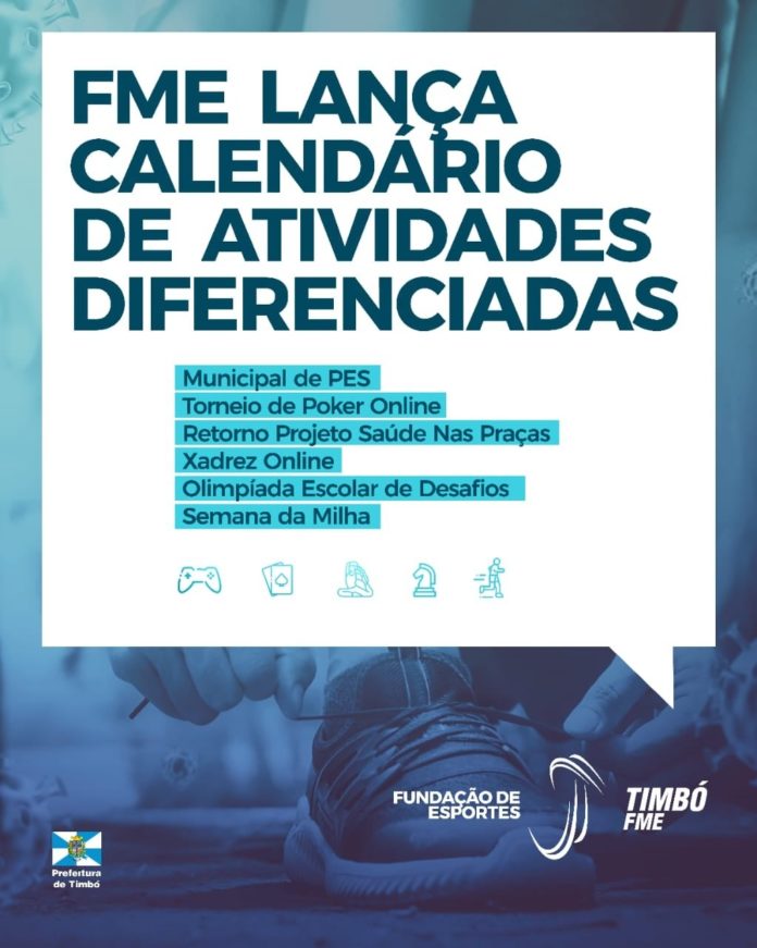 Na impossibilidade de executar o tradicional calendário esportivo de Timbó, composto na sua maioria por atividades coletivas, a FME apresenta algumas alternativas de atividades diferenciadas para atendimento de vários segmentos da comunidade.