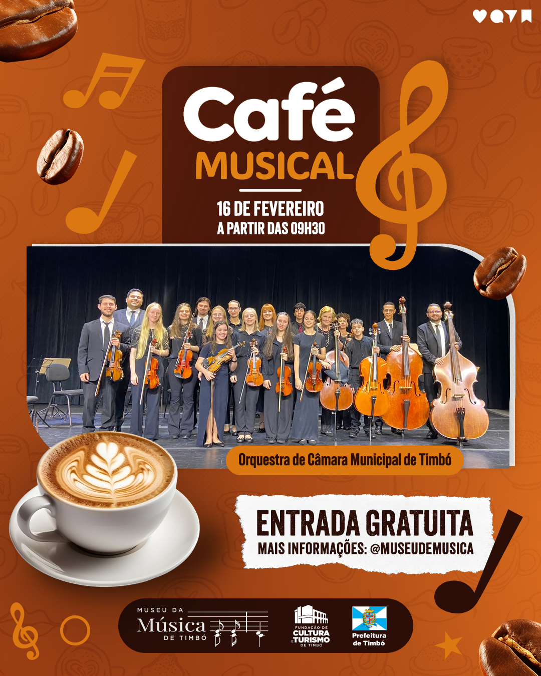 A Fundação de Cultura e Turismo de Timbó convida a comunidade para uma manhã especial de música e confraternização no primeiro Café Musical de 2025. O evento acontece no dia 16 de fevereiro, a partir das 09h30, no Museu da Música, e contará com uma apresentação especial da Orquestra da Câmara Municipal de Timbó.