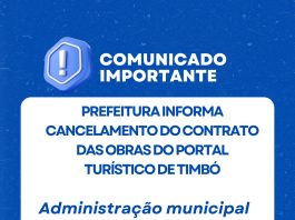 Prefeitura informa cancelamento do contrato das obras do Portal Turístico de Timbó.