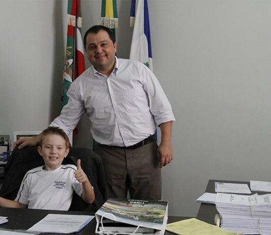 Prefeito de Timbó Marcelo Luiz Ferrari recebe visita ilustre de um fã