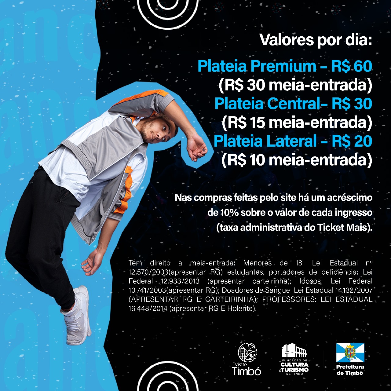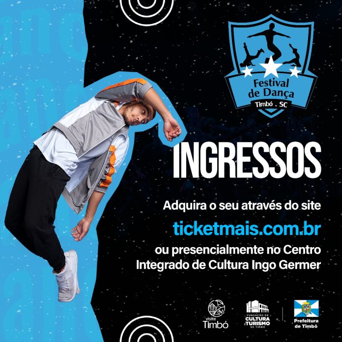 Já está liberada a compra de ingressos para o Festival de Dança de Timbó, que acontece neste final de semana, de 17 a 19 de maio, no Pavilhão de Eventos do Parque Henry Paul.