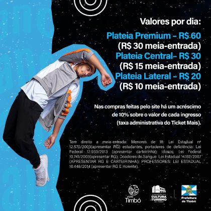 Plateia Lateral – R$ 20 (R$ 10 meia-entrada) cada dia