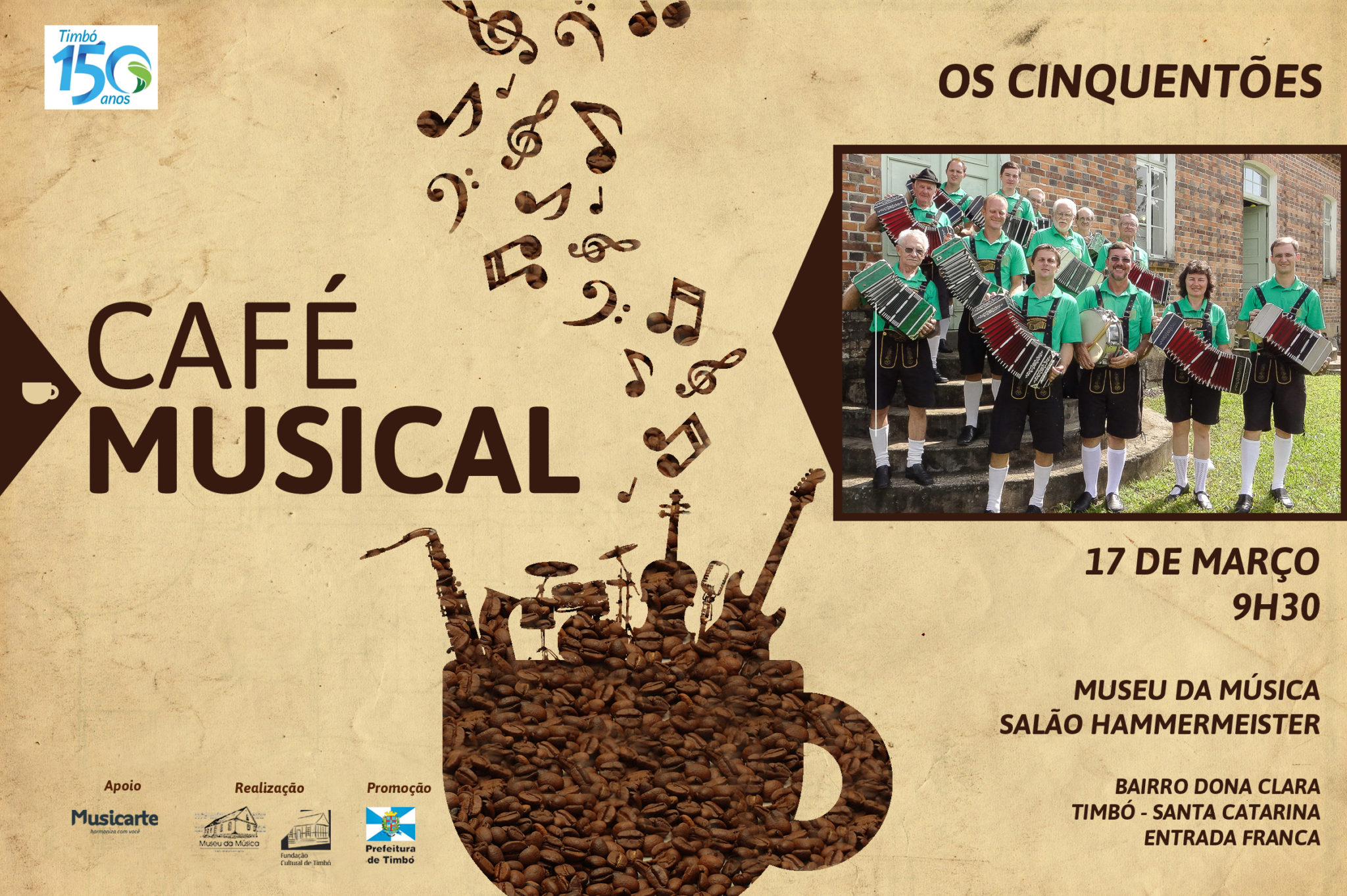 O Museu da Música recebe neste domingo, dia 17, o Grupo Folclórico Os Cinquentões na edição de março do Café Musical. A apresentação faz parte da programação especial dos 150 anos de Timbó, que traz como atração grupos timboenses que fazem parte da história do município. O Café Musical tem entrada gratuita e inicia às 09h30, com um delicioso café da manhã.