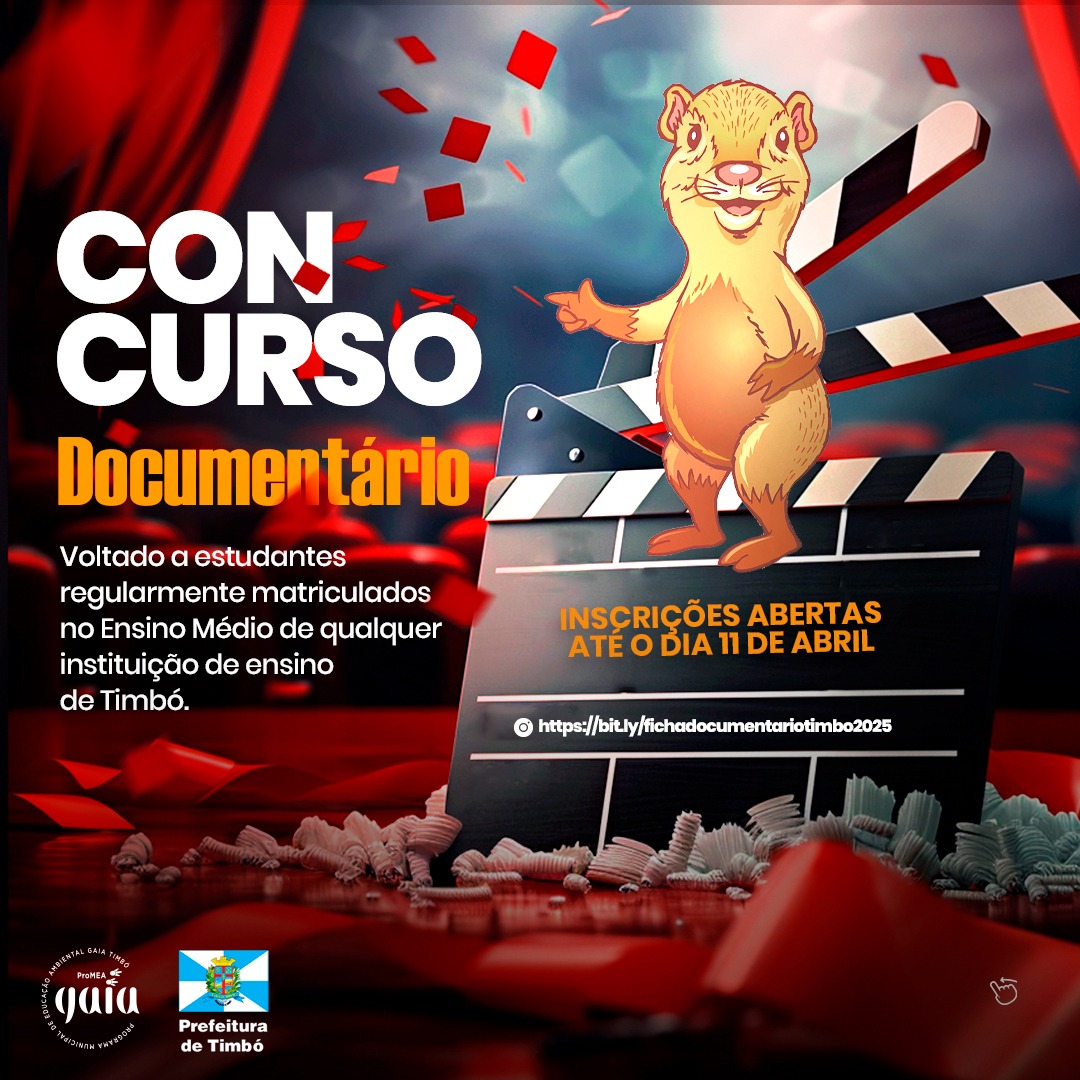 O Município de Timbó, por meio da Secretaria Municipal de Educação, Departamento do Meio Ambiente, Fundação de Cultura e Turismo, SAMAE e Grupo Intersetorial de Educação Ambiental (GIEA) Gaia Timbó, reforça o convite à comunidade escolar para participar do III Concurso de Documentários.