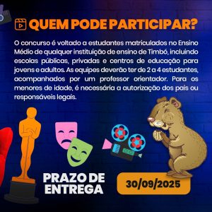Voltado a estudantes do Ensino Médio de todas as instituições de ensino de Timbó (públicas, privadas e EJA), o concurso busca incentivar o protagonismo jovem, a produção audiovisual e a divulgação científica e cultural do município.