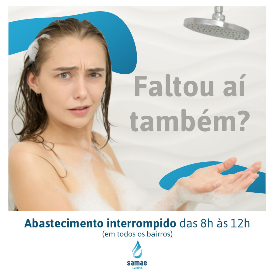 O Samae de Timbó informa que nesta terça-feira, 28, durante o período da manhã, entre 8h e meio-dia, haverá interrupção no abastecimento de água tratada para toda a cidade de Timbó. A paralisação se faz necessária para a implantação de dois registros nas saídas dos reservatórios da Estação de Tratamento de Água – ETA. Fica a orientação para que a população economize a água que possui nos reservatórios residenciais. Em caso de chuvas torrenciais o serviço será adiado.