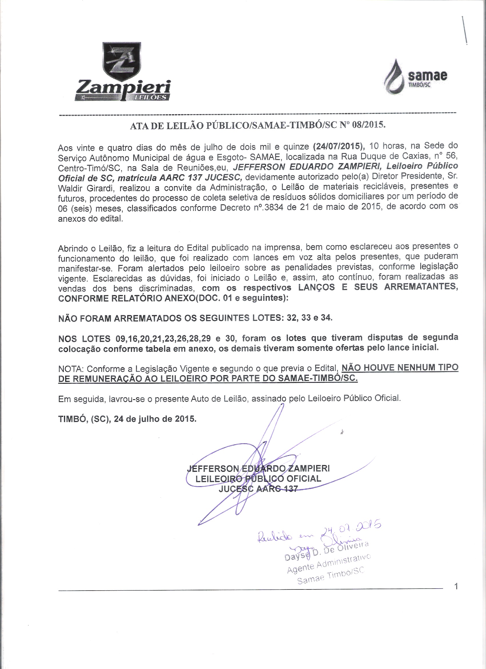 Leilão de materiais recicláveis, presentes e futuros, procedentes do processo de coleta seletiva de resíduos sólidos domiciliares por um período de 06 (seis) meses, classificados conforme Decreto nº.3834 de 21 de maio de 2015, de acordo com os anexos do edital