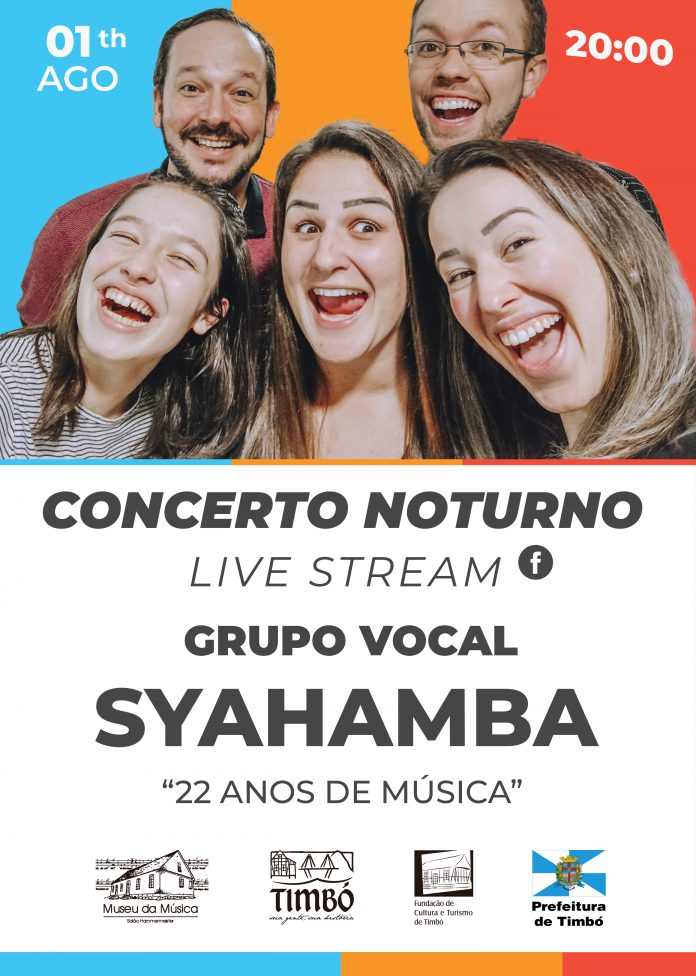 Que tal curtir o sábado ao som de muita música boa? O Grupo Vocal Syahamba irá ser a atração principal da live do Concerto Noturno que acontece neste sábado, 1º de agosto, a partir das 20h.