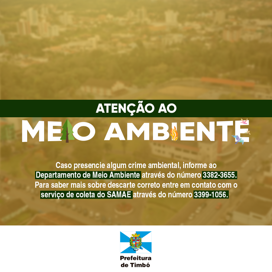 Pensando em contribuir com os munícipes, os profissionais do Departamento de Meio Ambiente de Timbó orientam que ações ambientais sem autorização, como queimadas de resíduos, folhas ou terras, corte de árvores, terraplanagem, pássaros silvestres em cativeiro, são práticas proibidas e passíveis de punição. Portanto, sempre em caso de dúvidas, é melhor fazer contato com o departamento para pedir orientação.