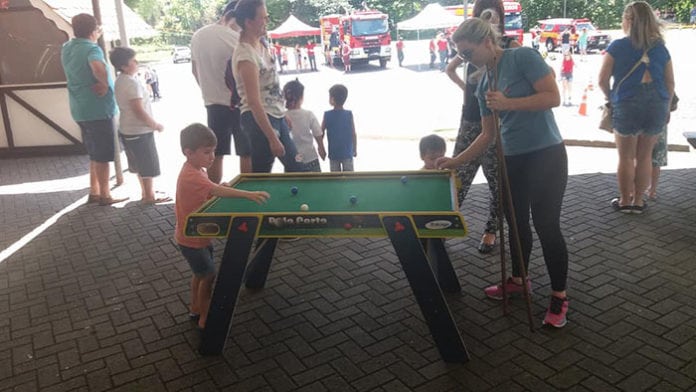 Sabe aquelas brincadeiras simples e divertidas que fizeram o maior sucesso no decorrer da nossa infância? Elas voltaram e foram super bem recebidas por pais e crianças no 1º Festival de Jogos, Brinquedos e Brincadeiras, promovido pela Fundação Municipal de Esportes de Timbó FME. O evento foi realizado no dia 28, sábado e contou com a parceria dos Bombeiros Militares. Mais de 1.200 pessoas passaram pelo Pavilhão de Eventos Henry Paul aproveitando as diversas atrações, que chegaram a formar filas de tão procuradas. Durante o evento foram distribuídas frutas e brinquedos às crianças participantes.