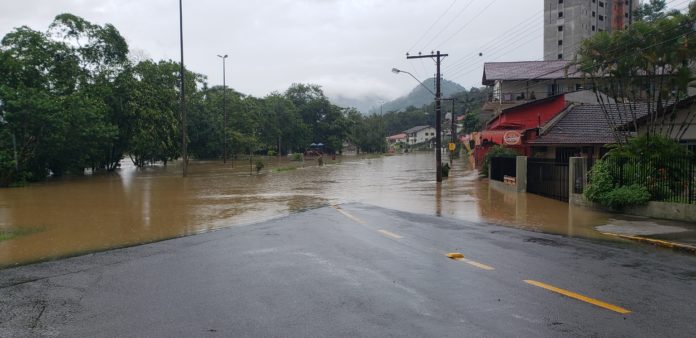 O nível do Rio Benedito passou dos 6,30 metros às 8h do dia 21, o que já caracteriza situação de enchente no município. O pico foi às 20h do mesmo dia, quando o nível do rio atingiu os 7,62 metros. A última enchente em Timbó havia sido registrada em 2014.