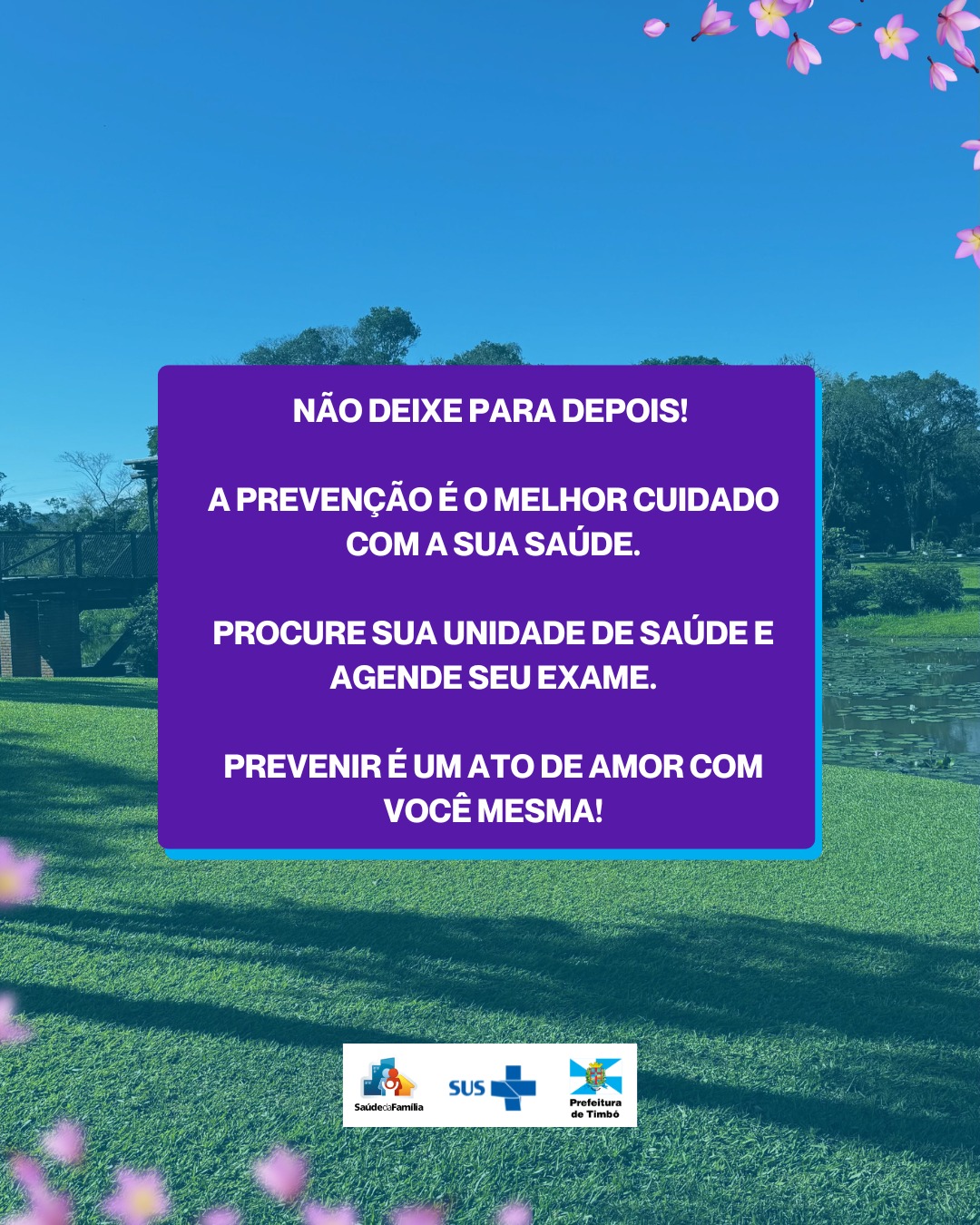 A Prefeitura de Timbó, por meio da Secretaria Municipal de Saúde, promove ao longo do mês de março a campanha Março Lilás, dedicada à conscientização e prevenção do câncer do colo do útero. A iniciativa reforça a importância do exame preventivo (Papanicolau), método simples, rápido e fundamental para o diagnóstico precoce da doença.