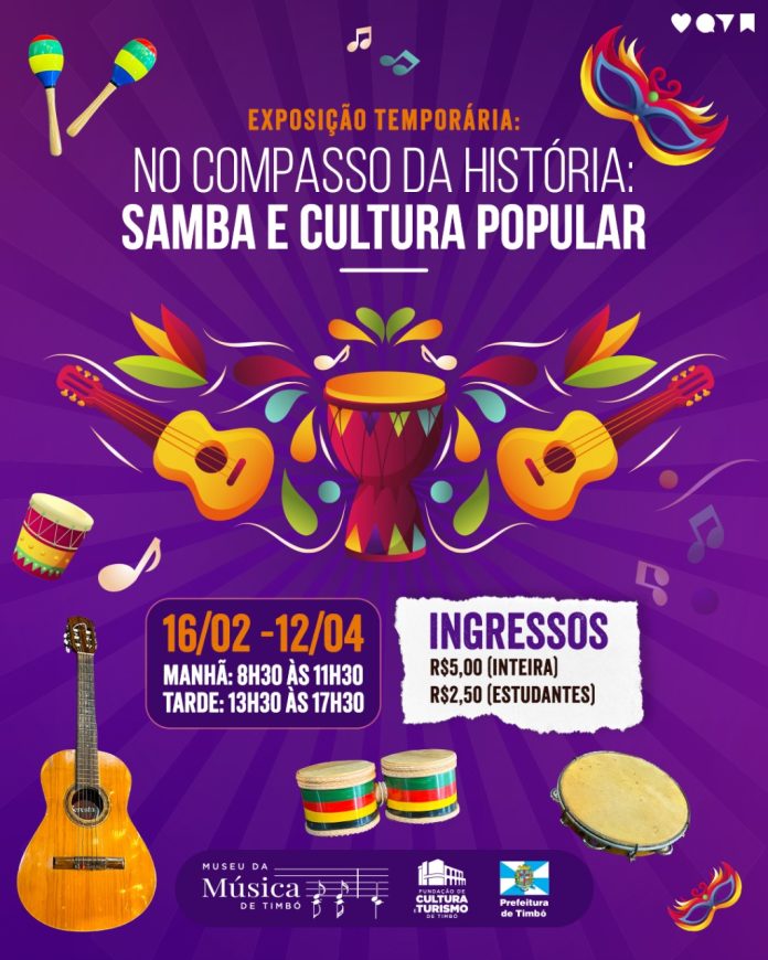 A partir do dia 10 de fevereiro, o Museu da Música de Timbó inaugura a exposição temporária “No Compasso da História: Samba e Cultura Popular”, que convida o público a explorar o universo rico e diverso do samba, um dos maiores símbolos da identidade cultural brasileira.