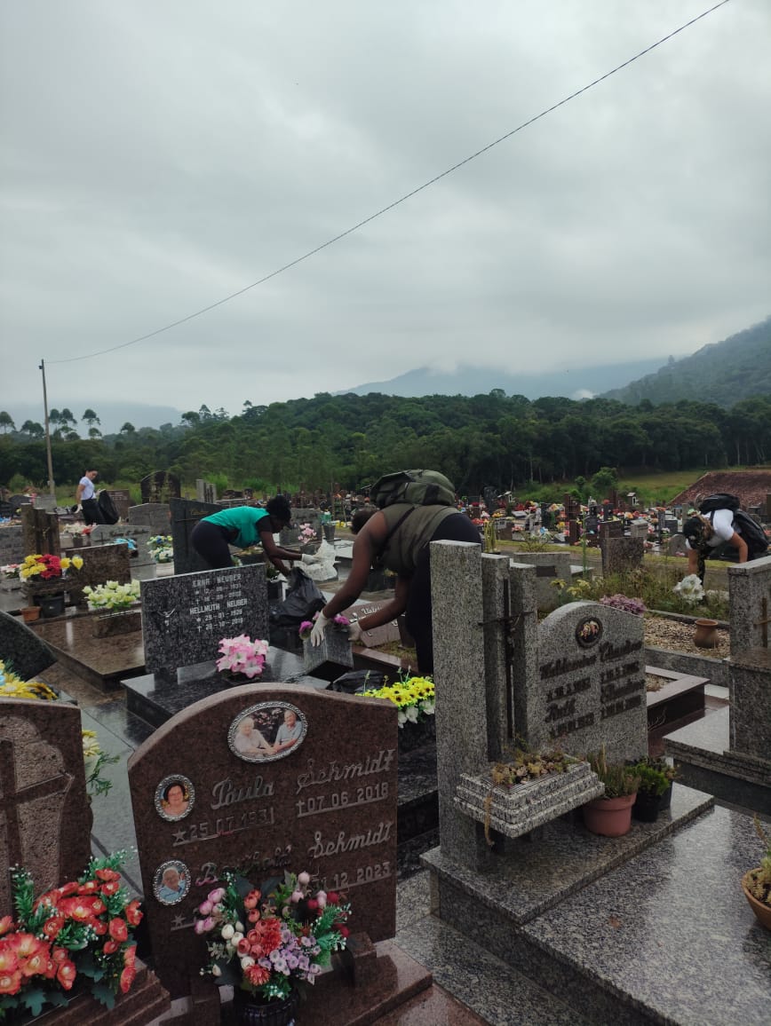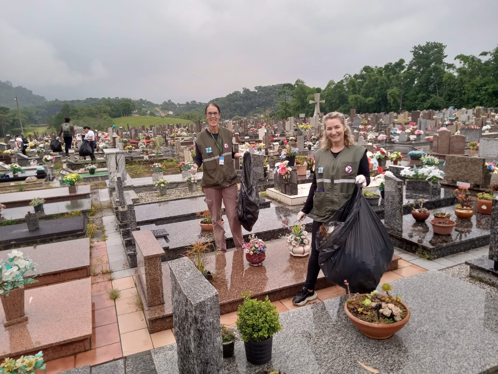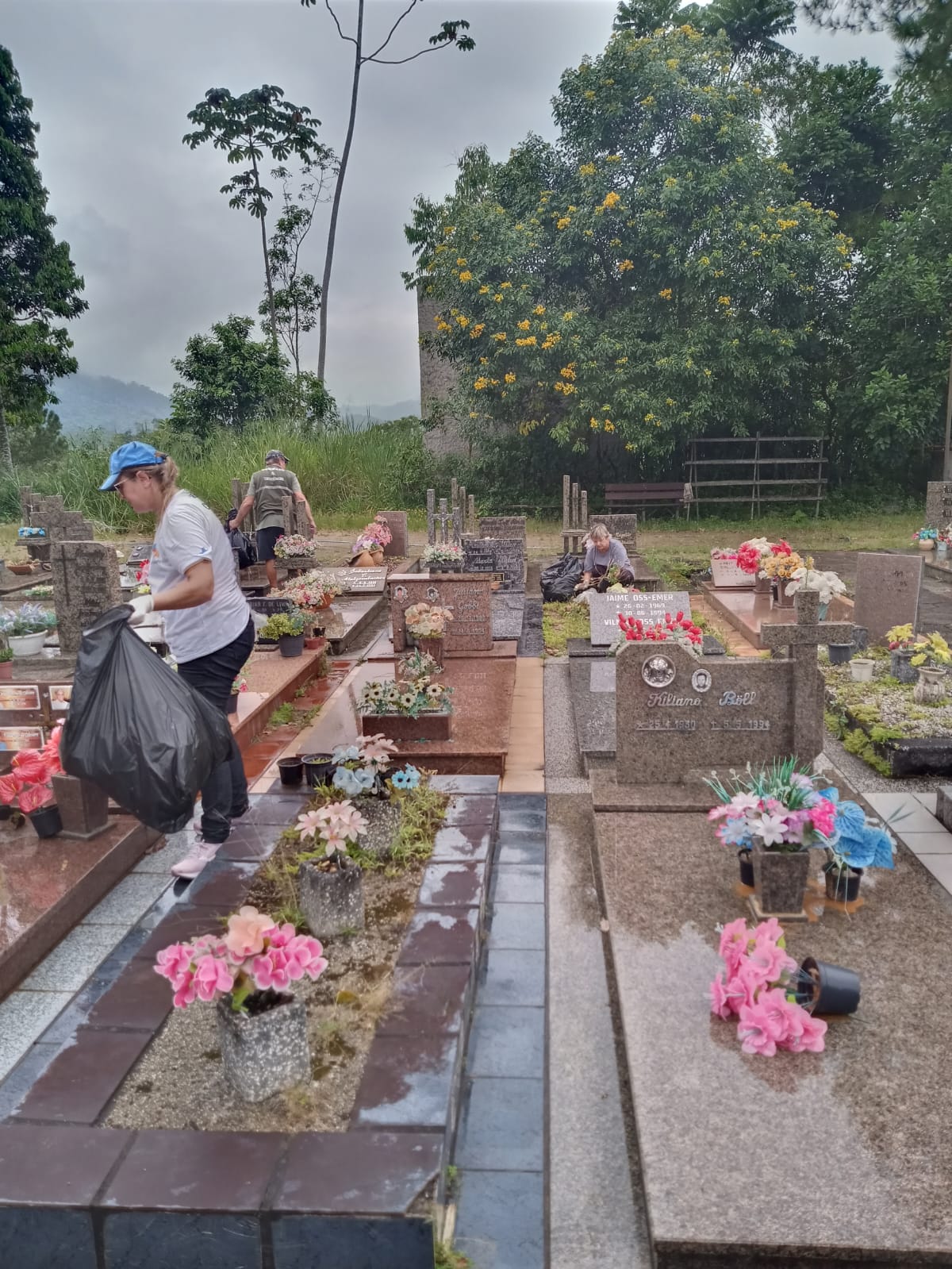 A Secretaria de Saúde de Timbó realizou no último final de semana um mutirão de combate à dengue, com foco na eliminação de criadouros do mosquito Aedes aegypti. Equipes da Vigilância Sanitária com o apoio das agentes de endemias e agentes comunitárias de saúde, visitaram os sete cemitérios públicos municipais para retirar água parada de plantas, ornamentos e outros recipientes que poderiam servir como foco para proliferação do mosquito transmissor da doença.