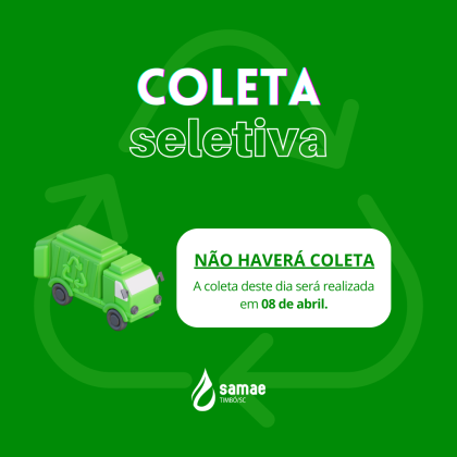 Não haverá coleta de resíduos recicláveis (Araponguinhas, Estados e Padre Martinho Stein). A coleta deste dia será realizada dia 08 de abril, próxima segunda-feira.