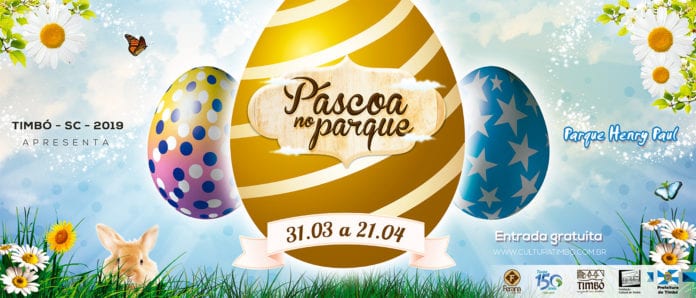 Há poucas semanas da Páscoa, os preparativos para a Páscoa no Parque já iniciaram em Timbó. O evento é promovido pela Prefeitura de Timbó, em parceria com a Fundação Cultural, e tem início no dia 31 de março, no Parque Henry Paul. A programação é gratuita e segue até o dia 21 de abril, com apresentações culturais, Festival de Cucas, Caça aos Ovos, passeios de trem, oficina de pintura de casquinhas, pintura facial e brincadeiras para as crianças, e venda de artesanato.