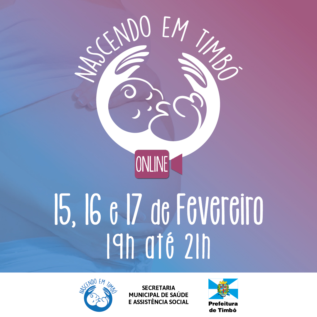 Atenção papais e mamães: entre os dias 15 e 17 de fevereiro acontece mais uma edição do Nascendo em Timbó, uma iniciativa da Prefeitura de Timbó junto à Secretaria de Saúde! Visando a segurança de todos, será feita uma transmissão ao vivo nos três dias, das 19h às 22h. Sendo assim, você pode acompanhar todo o conteúdo do conforto da sua casa.