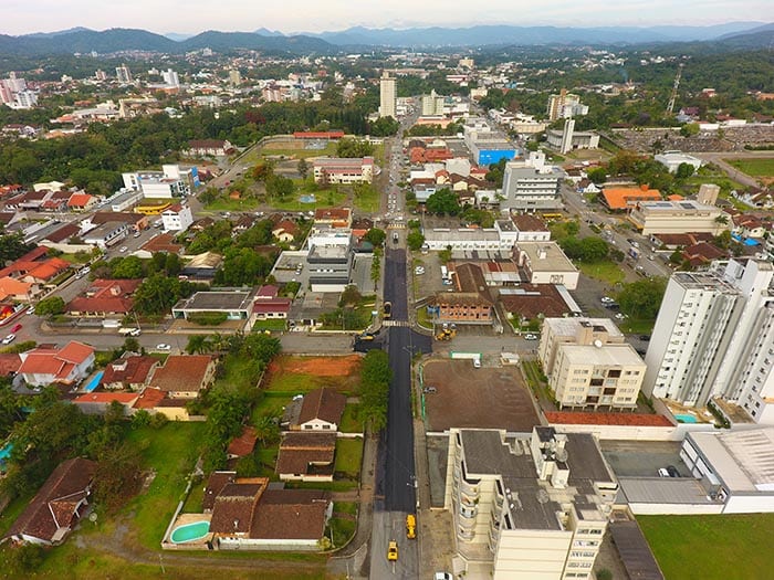 A pavimentação asfáltica da Avenida Sete de Setembro está incluída no pacote de pavimentações dos principais corredores de serviço da cidade, dentro do Programa Pavimenta Timbó.
