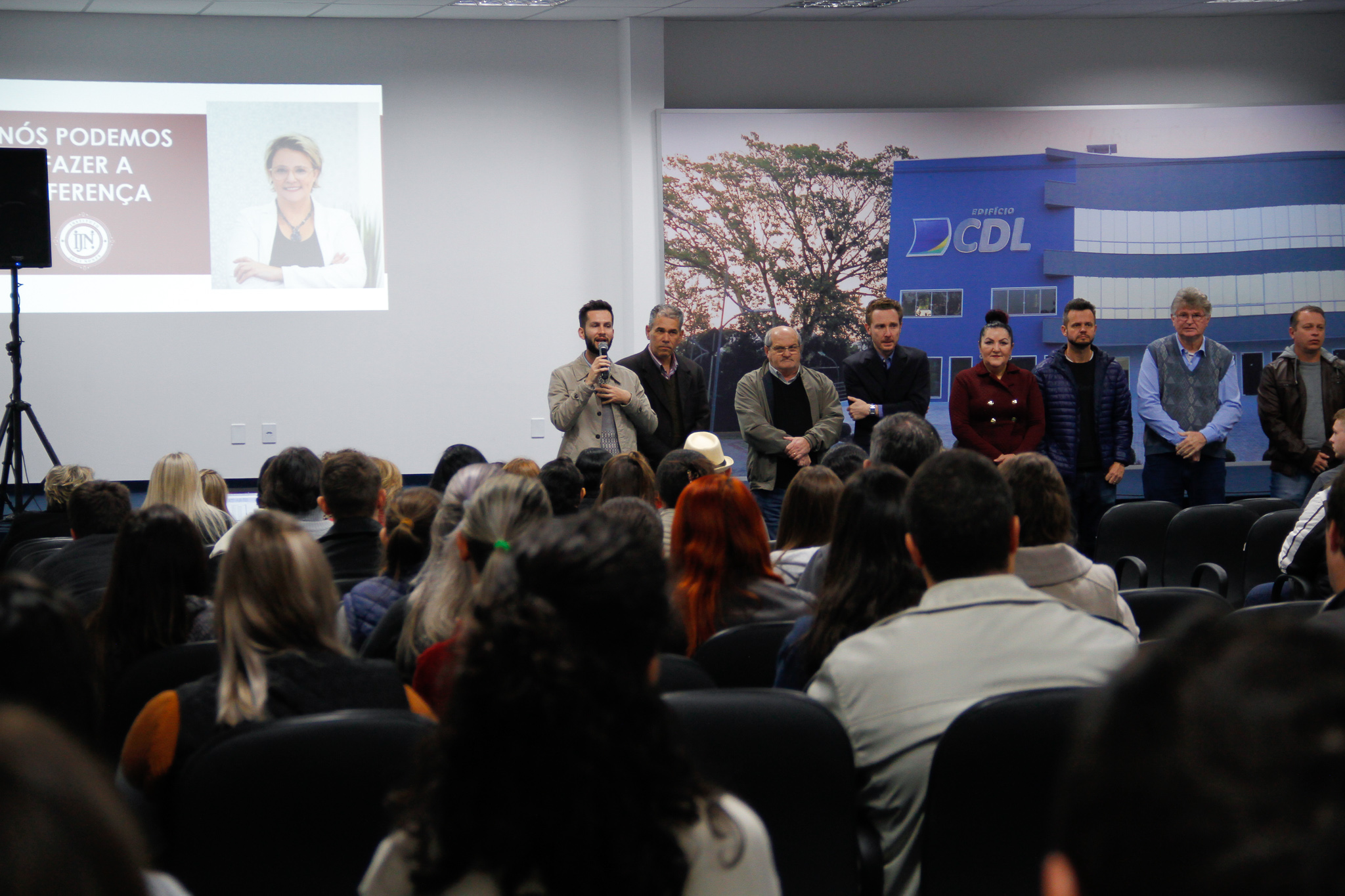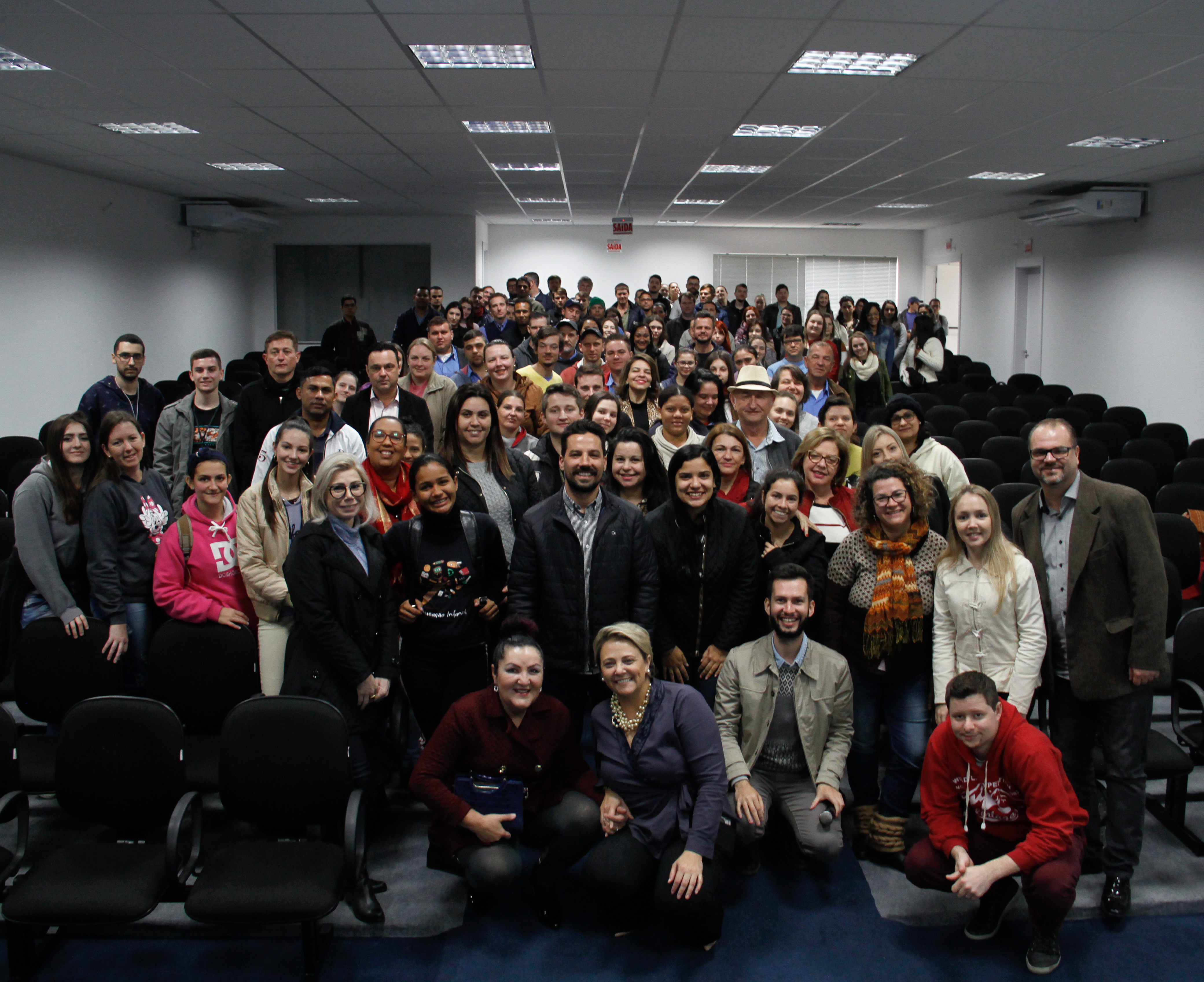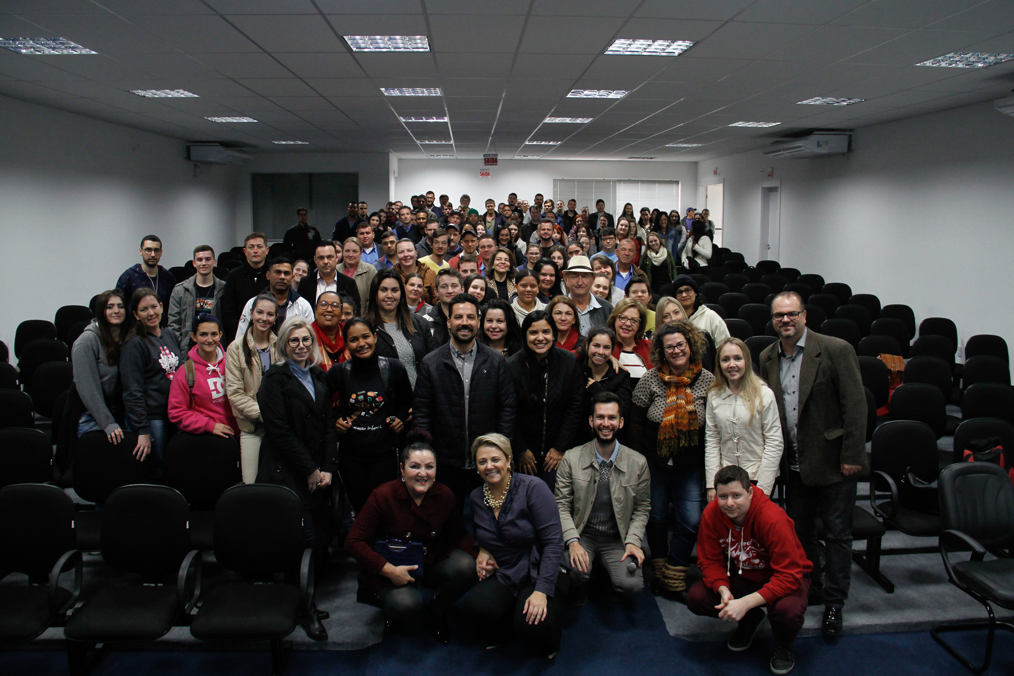 Entre os cerca de 120 novos servidores presentes estiveram professores, enfermeiros, auxiliares operacionais, médicos, pedreiros, advogados e muitos outros profissionais que a partir de agora integram o quadro de servidores públicos da Prefeitura de Timbó. Na sequência todos assistiram a palestra motivacional “Nós Podemos Fazer a Diferença”, com a palestrante e master coach, Juci Nones.