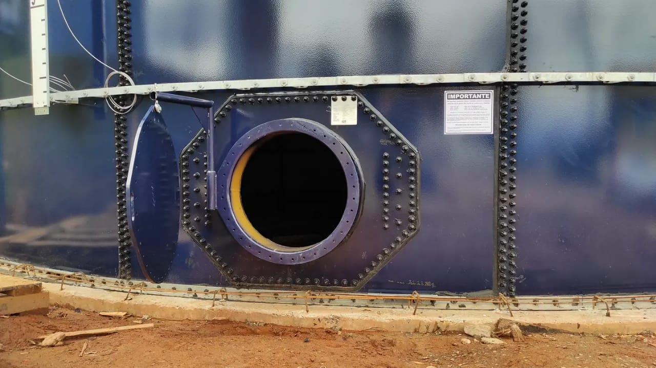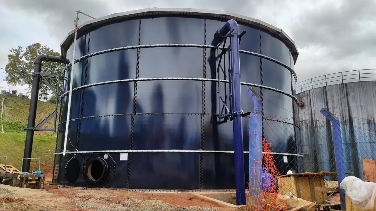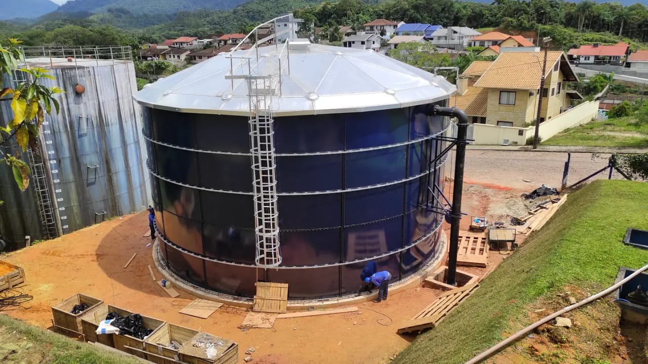 O novo e maior reservatório de água potável de Timbó está recebendo os últimos ajustes, como as conexões com as tubulações.
