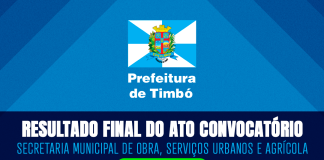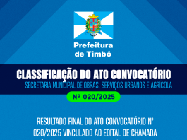 Prefeitura de Timbó divulga resultado final do Ato Convocatório nº 015/2025...