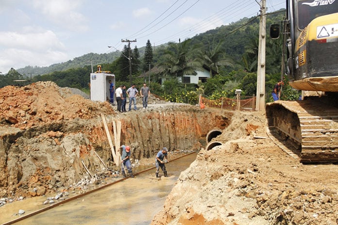 O Prefeito de Timbó, Jorge Kruger, esteve na manhã desta quinta-feira (16) acompanhando as obras do Anel Viário do Araponguinhas. No trecho visitado está sendo construída uma galeria com tubos de dois metros quadrados. O trânsito no local ficará totalmente interditado até o fim de semana. Jorge conversou com engenheiros e com algumas pessoas da comunidade. Enquanto esta primeira parte da obra segue, na Prefeitura acontece a licitação para a segunda parte, que é a Ponte de Dona Clara.