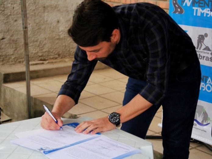 A assinatura das duas ordens de serviço aconteceu no semáforo da Rua Araponguinhas, na SC 477, local onde serão iniciadas as obras da primeira rotatória. Estiveram presentes também secretários municipais e a imprensa local e regional para uma coletiva.