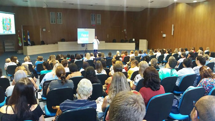 Na sequência os docentes assistiram a uma palestra motivacional. A Busca da Excelência: professor inovador, ministrada pelo professor Airton Corrêa, que tratou, entre outros pontos, da necessidade de ação dos professores, de sempre estarem aprendendo e principalmente motivados com seus alunos e colegas de classe.