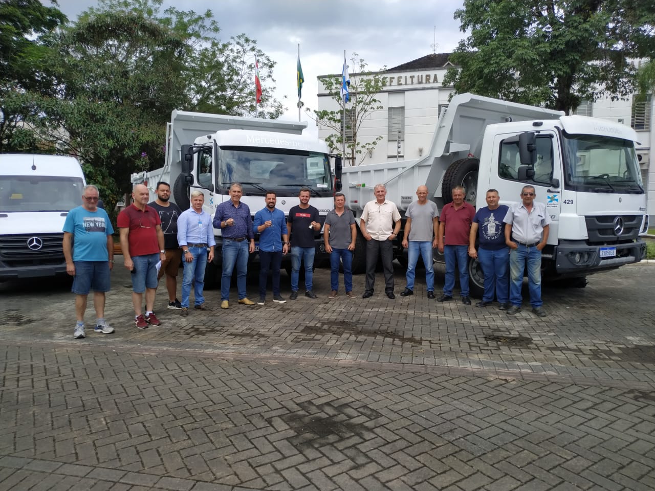 A Prefeitura de Timbó recebeu na tarde desta quarta-feira (15), mais três veículos para ampliar a sua frota e trazer mais agilidade e segurança nos serviços prestados. Trata-se de um Micro-ônibus Mercedes-Benz Sprinter de 20 lugares, mais um lugar para o motorista, no valor de R$ 339 mil, destinado para a Secretaria Municipal de Educação (SEMED); e outros dois Caminhões Caçamba eixo triplo, modelo 2730 Mercedes-Benz, no valor de R$ 558 mil cada um, à Secretaria de Obras.