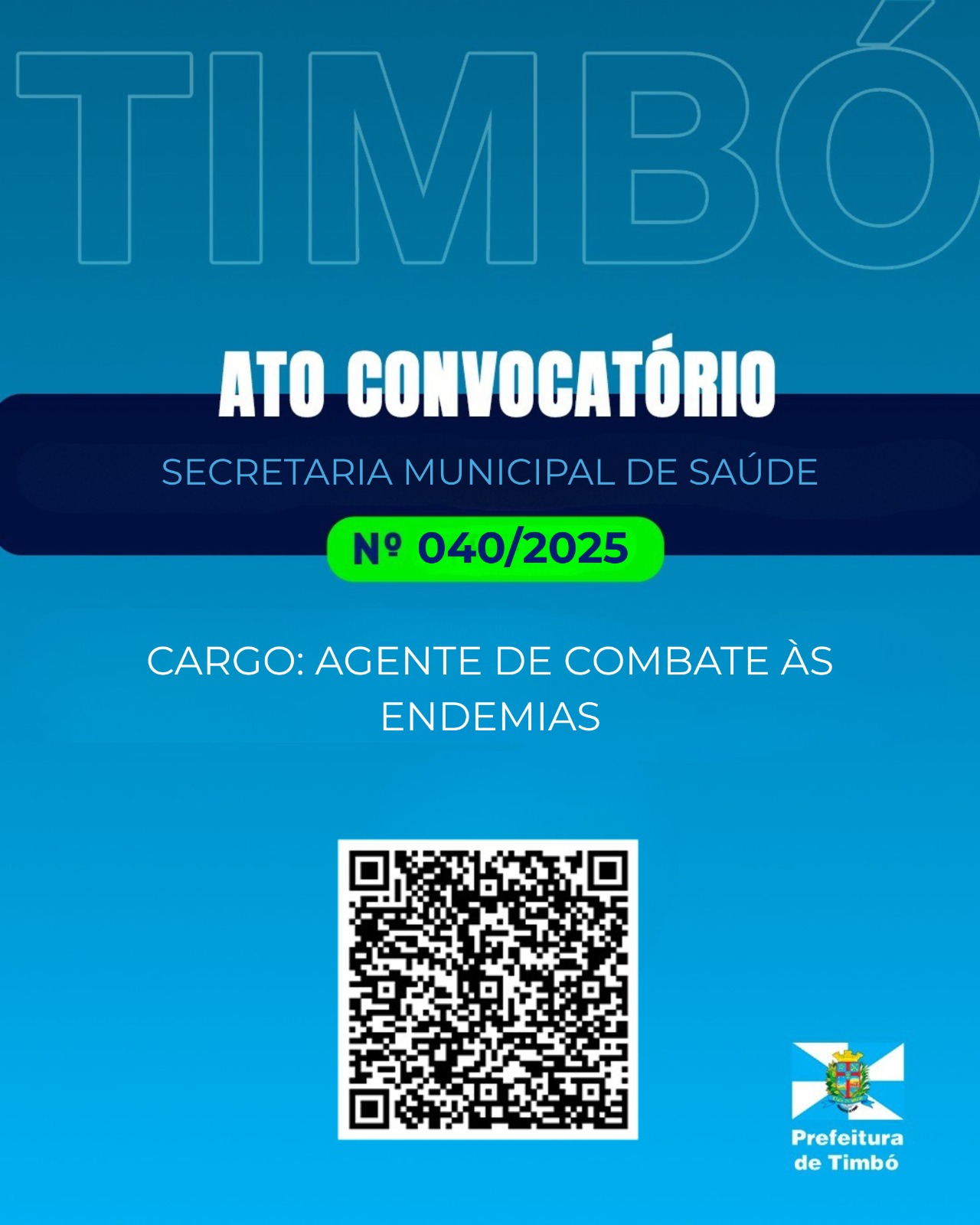 A Secretaria Municipal de Saúde de Timbó anuncia a convocação de candidatos para o preenchimento de vagas temporárias, conforme estabelecido no Ato Convocatório nº 040/2025, vinculado ao Edital de Chamada Pública Suplementar nº 03/2024.