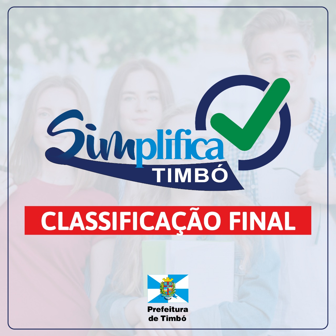 A Comissão de Seleção de Pessoal do Simplifica Timbó torna pública a classificação dos candidatos inscritos através da chamada pública – Edital n° 001/2020. As inscrições foram realizadas no período do dia 07 de dezembro de 2020 a 11 de dezembro de 2020 e as entrevistas nos dias 16, 17 e 18 de dezembro de 2020.