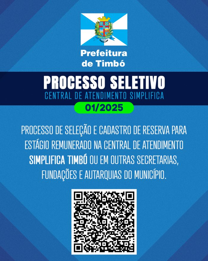 A Prefeitura Municipal de Timbó, por meio da Secretaria Municipal da Fazenda e Administração e da Comissão de Seleção de Pessoal, torna pública a Classificação Final do Processo Seletivo 01/2025 para Estágio Remunerado na Central de Atendimento Simplifica Timbó e em outras secretarias, fundações e autarquias do município.