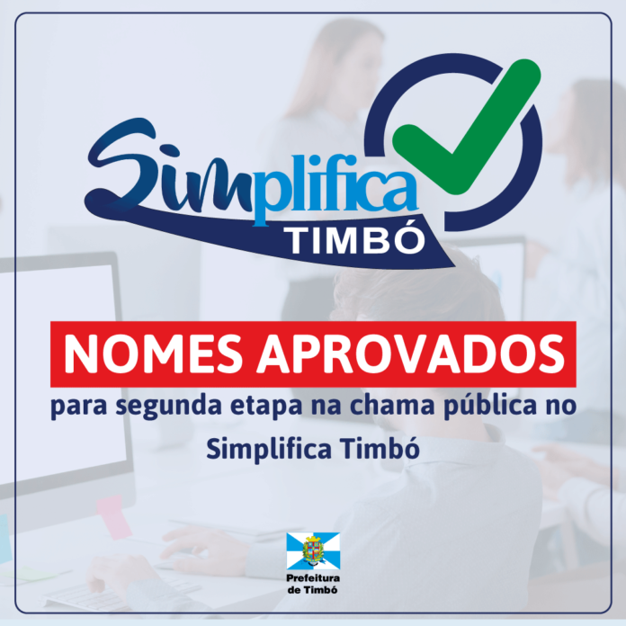 A Prefeitura Municipal de Timbó, através de Secretaria Municipal da Fazenda e Administração, torna pública a relação dos nomes aprovados para participar da segunda etapa da Chamada Pública de Seleção e Cadastro de Reserva nº 02/2021.