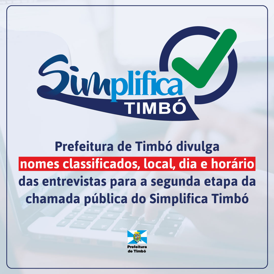 A Prefeitura de Timbó, por meio da Secretaria de Fazenda e Administração, torna pública a relação de candidatos com o cronograma de local, dias e horários para a SEGUNDA ETAPA da Chamada Pública de Seleção e Cadastro de Reserva nº 01/2020.