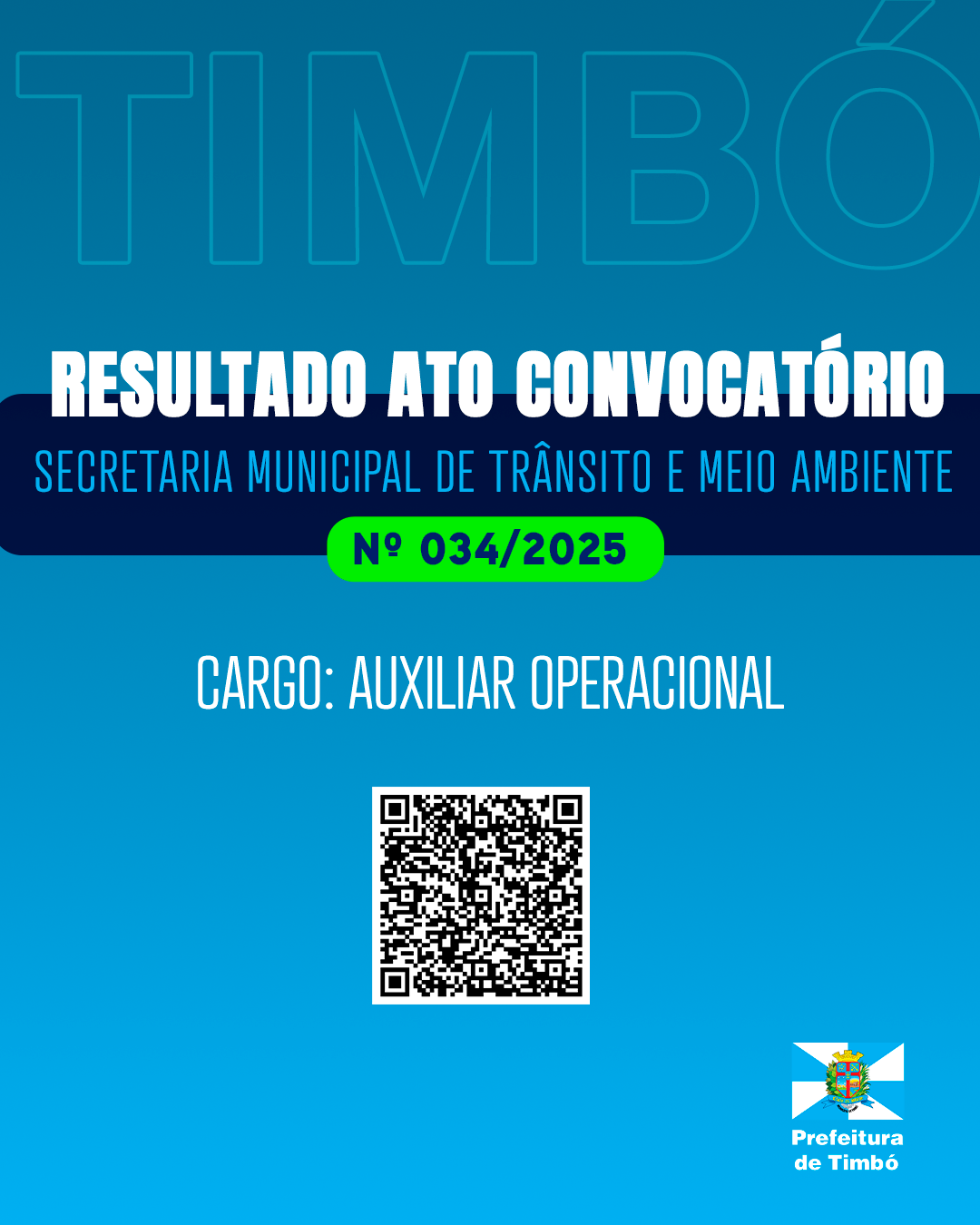 A Secretaria Municipal de Trânsito e Meio Ambiente, por meio da Comissão de Seleção de Pessoal, torna público o resultado final do Ato Convocatório nº 034/2025, vinculado ao Edital de Chamada Pública Suplementar nº 03/2024.