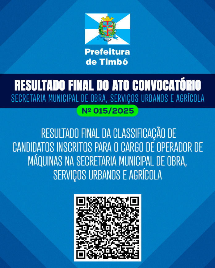 A lista de classificação do edital está disponível no link: https://www.timbo.sc.gov.br/wp-content/uploads/2025/03/Relacao-classificacao-final-Ato-Convocatorio-015.2025-Obras.pdf