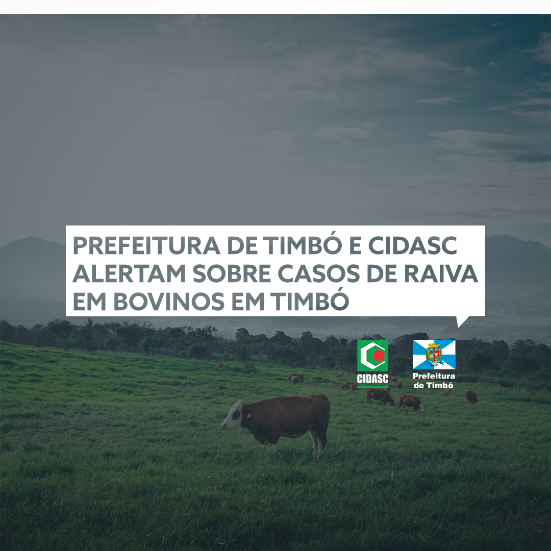 No dia 21 de maio foram confirmados dois casos positivos de raiva em bovinos em Timbó. Segundo a Companhia Integrada de Desenvolvimento Agrícola de Santa Catarina (Cidasc) de Timbó, são focos em duas propriedades na Mulde Central. O último caso de raiva registrado no município ocorreu por volta de 2012.