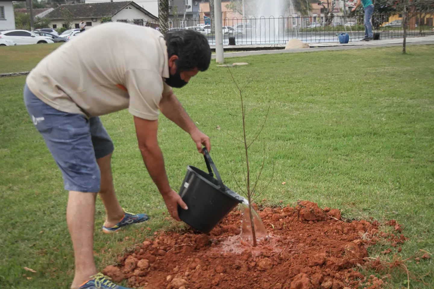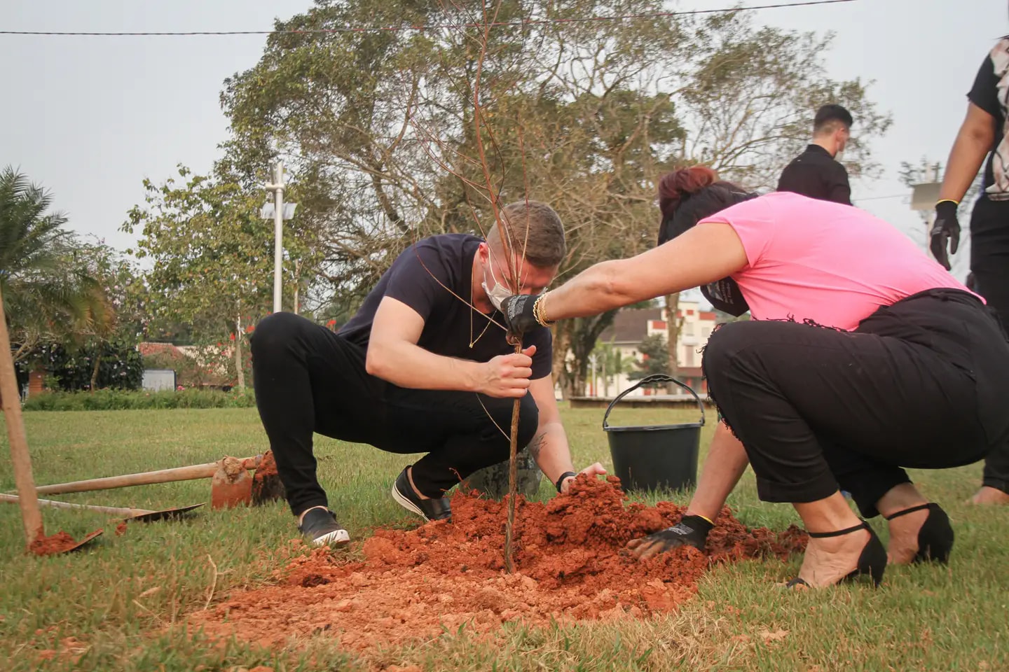 Estiveram presentes para realizar o plantio o prefeito de Timbó, Jorge Krüger; o vice-prefeito, Guilherme Voigt Júnior (Tutti); o presidente do SAMAE, Waldir Girardi; o presidente da Fundação de Cultura e Turismo, Jorge R. Ferreira; a secretária de Planejamento, Bruna Andrade; o secretário de Obras, Moacyr Cristofolini Jr., a secretária de Administração e Fazenda, Maria Angélica Faggiani; o executivo de Gabinete, Andrei Kayo Lamim; o diretor do departamento de Meio Ambiente, Ricardo Longo Orsi e o engenheiro florestal, Ricardo Murilo Malheiros.