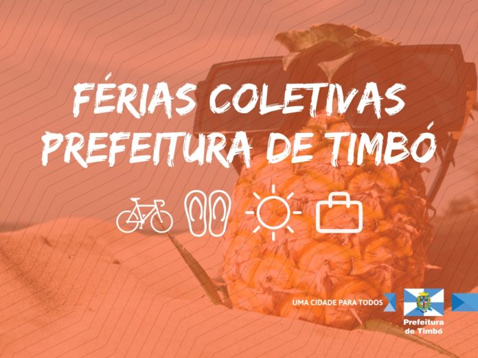 A partir do dia 17 de dezembro, próxima segunda-feira, os servidores da Prefeitura de Timbó, Secretarias e Autarquias Municipais estarão em férias coletivas e regime de plantão em alguns setores. De acordo com o decreto nº 4945 de 01 de outubro de 2018, assinado pelo prefeito Jorge Kruger, o período de férias coletivas dos servidores da Administração Direta e Indireta tem início no dia 17 de dezembro de 2018 e encerra no dia 15 de janeiro de 2019. As atividades serão retomadas no dia 16 de janeiro de 2019, terça-feira.