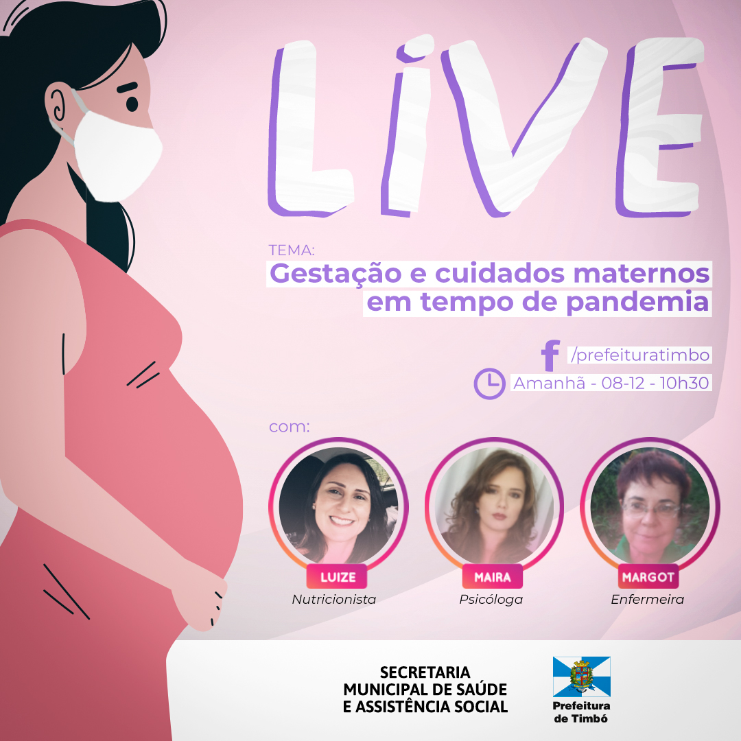 Por isso convidamos a todas as futuras mamães e os futuros papais para que acompanhem nossa live amanhã, dia 8 de dezembro, aqui no Facebook da Prefeitura de Timbó! A partir das 10h30 a enfermeira Margot, junto com a psicóloga Maira e a nutricionista Luiza, irão falar sobre o tema “Gestação e cuidados maternos em tempo de pandemia”.