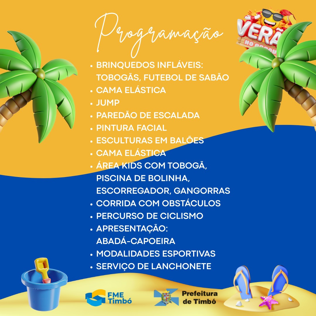 Após o adiamento na semana passada devido à previsão de chuva, o Verão no Parque está confirmado para este domingo, dia 22. O evento é gratuito e voltado ao lazer, esporte e diversão para toda a família. A programação será realizada no Parque Henry Paul, reunindo diversas atividades recreativas, culturais e esportivas para crianças e comunidade em geral.