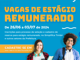 Inscrições abertas para vagas de estágio remunerado na Prefeitura de Timbó