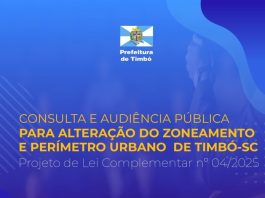 Prefeitura e Câmara de Timbó convocam comunidade para Audiência Pública sobre alteração de zoneamento urbano